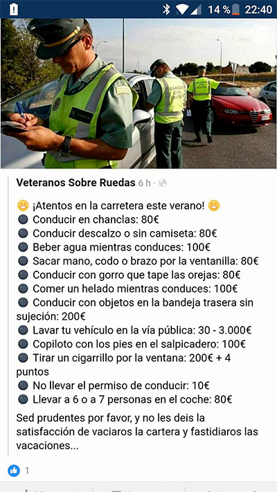 На сайте испанского ГАИ есть штрафы за скорость и снятие пунктов за прочие нарушения, но следов перечисленных в посте штрафов не нашел.