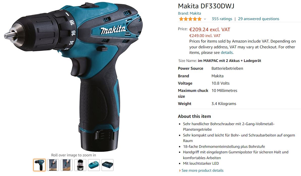 12В Синий бош в самом простом варианте стоит в России 5500-6000 в комплекте с 2 аккумуляторами и зарядником. Думаю в других странах, не сильно больше.