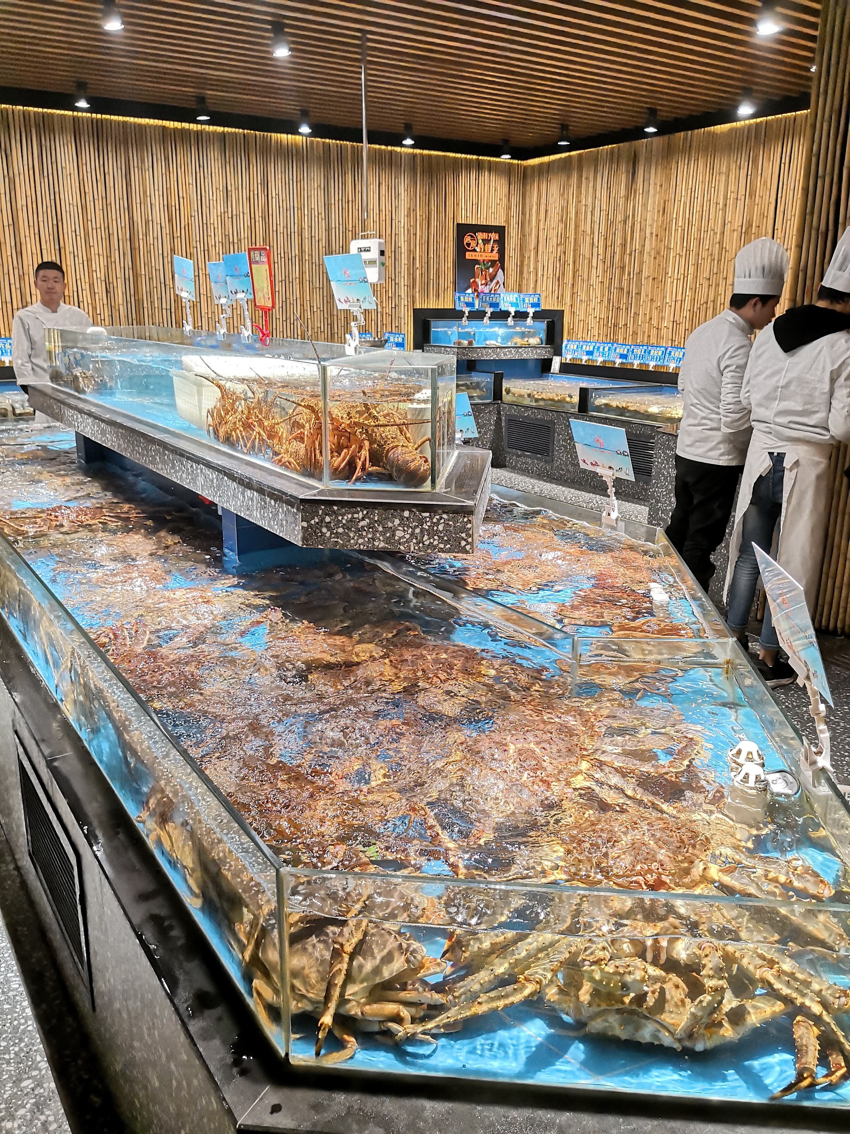 Ещё нравится, когда тарелочки с едой разноцветные проезжают, 3- 5 юаней в зависимости от цвета.