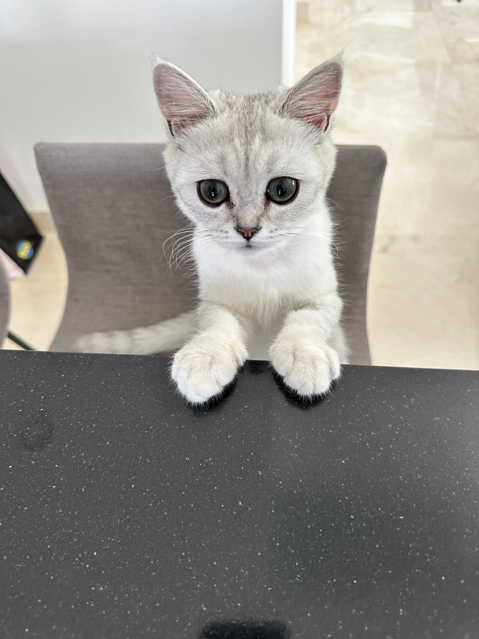 Кстати ухи не висят, они торчком. Глаза огромные, пока болотного цвета, заводчик говорит, что на изумрудные должен где-то к 9-10 месяцам поменяться.