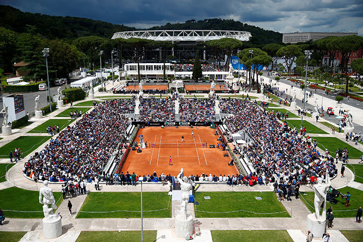 только на вашей фотографии это комплекс, больше по площади раза в четыре - с трибунами и газонами. А там статуи чуть не прямо на корте.