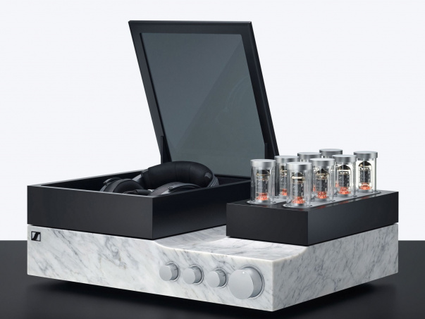 В Sennheiser HE 1 используются восемь электронных ламп, модель которых — SE802S. Это двойные триоды с логотипом Sennheiser, выпускаемые по индивидуальному заказу. Все лампы откалиброваны вместе, и если выходит из строя хотя бы одна, производитель меняет комплект из всех восьми для сохранения идеальной настройки усилителя. Лампы защищены кварцевыми колпаками и установлены на антивибрационной подвеске внутри корпуса из каррарского мрамора, чтобы минимизировать шумы и внешние воздействия.