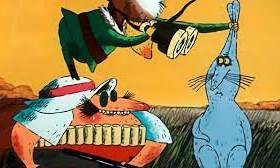 Народным умельцам удалось механизировать изваяние — двухметровый заяц может стучать лапками по барабану. (Отсюда.)