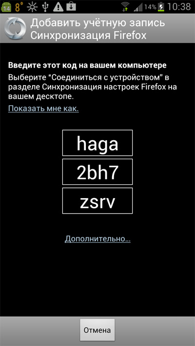 Для этого присоединяемое устройство выдает набор уникальных кодов, которые нужно ввести в разделе синхронизации на базовом устройстве. И только после этого устройство будет подключено и скачает ваши дополнения, закладки и так далее.