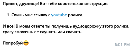 Добавляете Youtube линк , получаете линк на скачивание аудио дорожки.