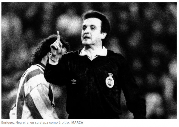 Уже несколько месяцев в испанской прессе пишут о скандале с барселонским футбольным клубом "Барса": руководство клуба обвиняют в подкупе судейского корпуса. Об этом деле уже много чего известно, на данный момент клубу Прокуратурой Барселоны предъявлено так называемое формальное обвинение по факту выплаты в период с 2014 по 2018 годы около 3 миллионов евро компаниям заместителя руководителя Технического комитета футбольных арбитров Испании, бывшему футбольному судье Хосе Марии Энрикесу Негрейре (он на фото выше в период, когда он еще был арбитром).