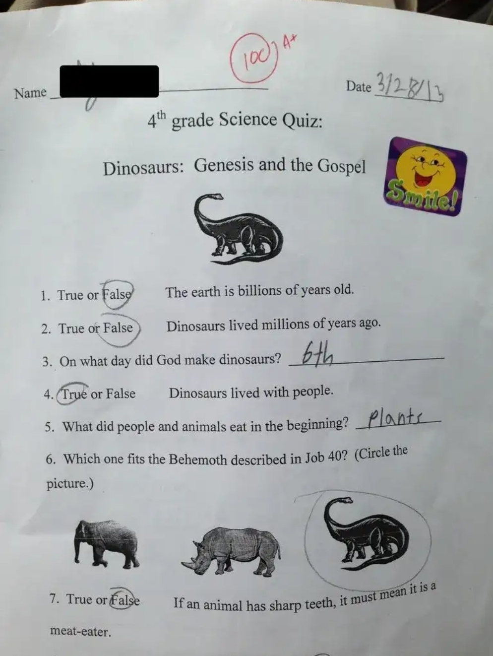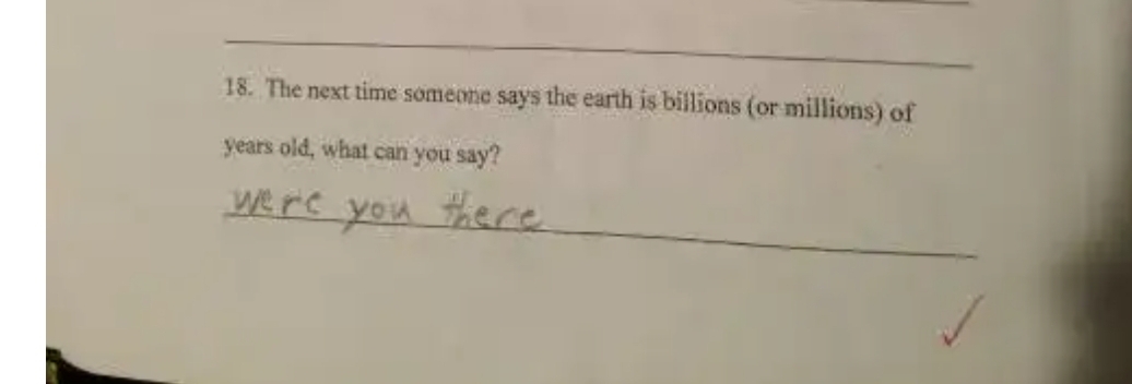 Уже. Вы и сами в спойлере написали. Вы написали, что это - якобы реальный тест в реальной школе. Подразумевая, что подобную дичь преподают в школьной программе. По факту - это не более чем тест на то, что дети поняли, что им говорилос в ДВД. Не в школьной программе. Например, в ДВД говорилось что динозаврам 4000 лет, что они и отразили в тесте.