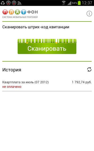 Полезное и бесплатное приложение - "Сканер оплаты квитанций ЖКХ Москвы" (под Android; под iPhone пока нет, но обещают). Делают его разработчики "Платфона", про который я писал (тоже полезная штука), но с "Платфоном" напрямую это приложение не связано и его установки не требует.
