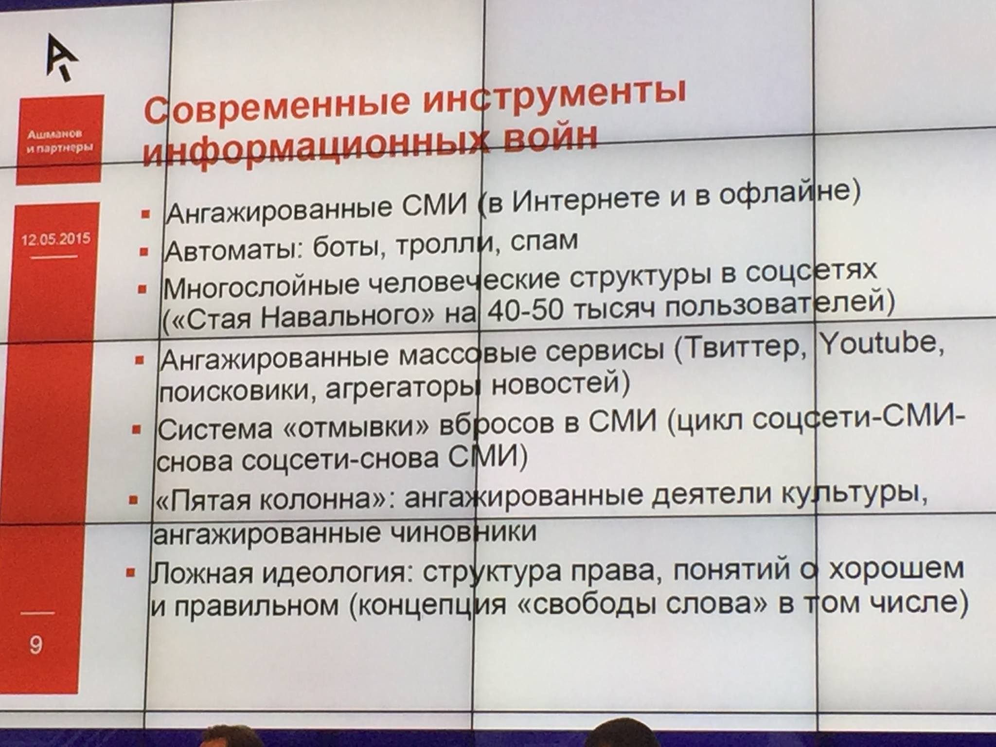 Ашманов по крайней мере все это доказывает убедительно и на примерах. Так что ничего удивительного в его аргументах об информационных войнах я не вижу.