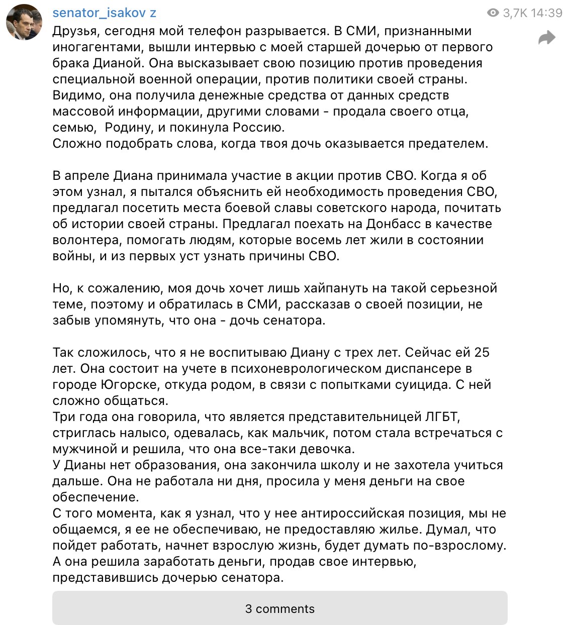 В тех же США или ЕС, большинство читают этот пост Миронова как намерения и действия России.