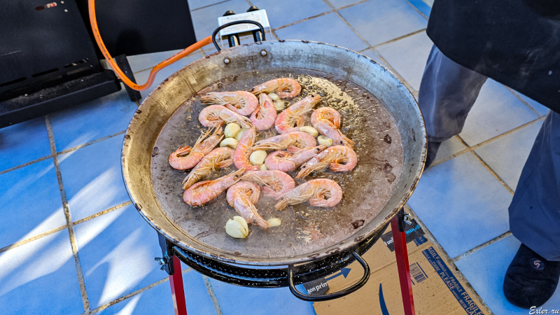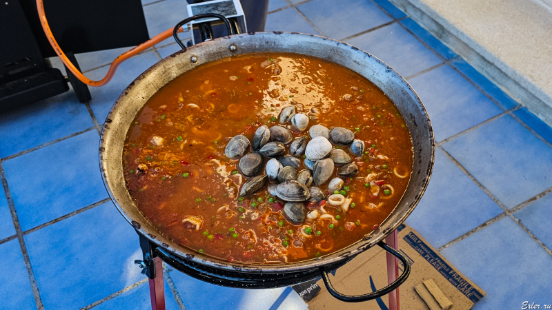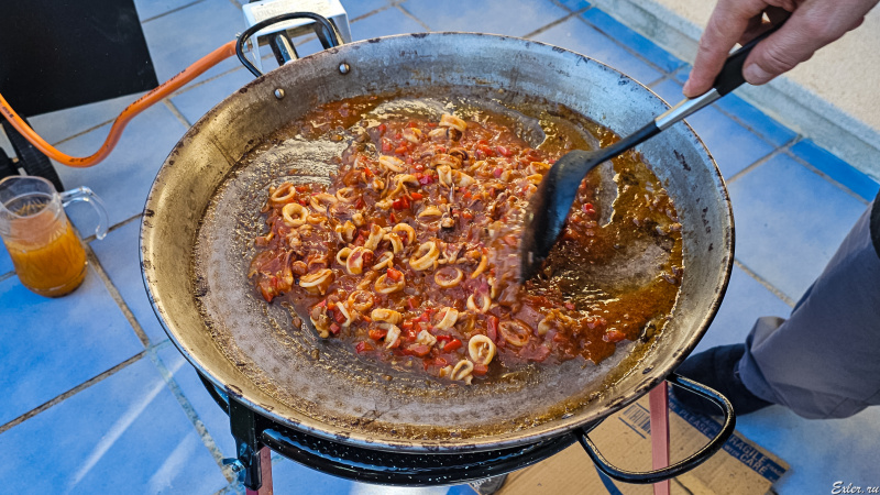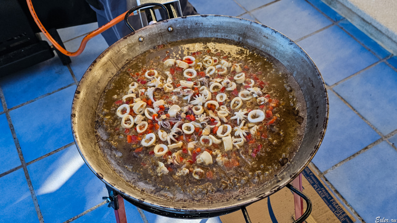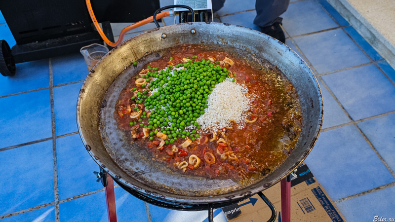 Ну и все, теперь 20 минут паэлья готовится, потом огонь выключается, паэльера накрывается крышкой, и блюдо должно постоять еще минут 10-15.