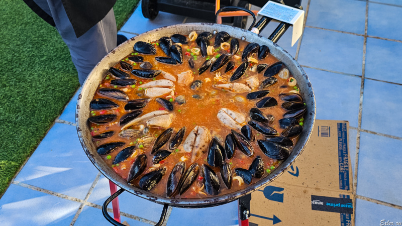 Паэлью с морепродуктами делают на рыбном бульоне. Паэлью мясную - на курином.