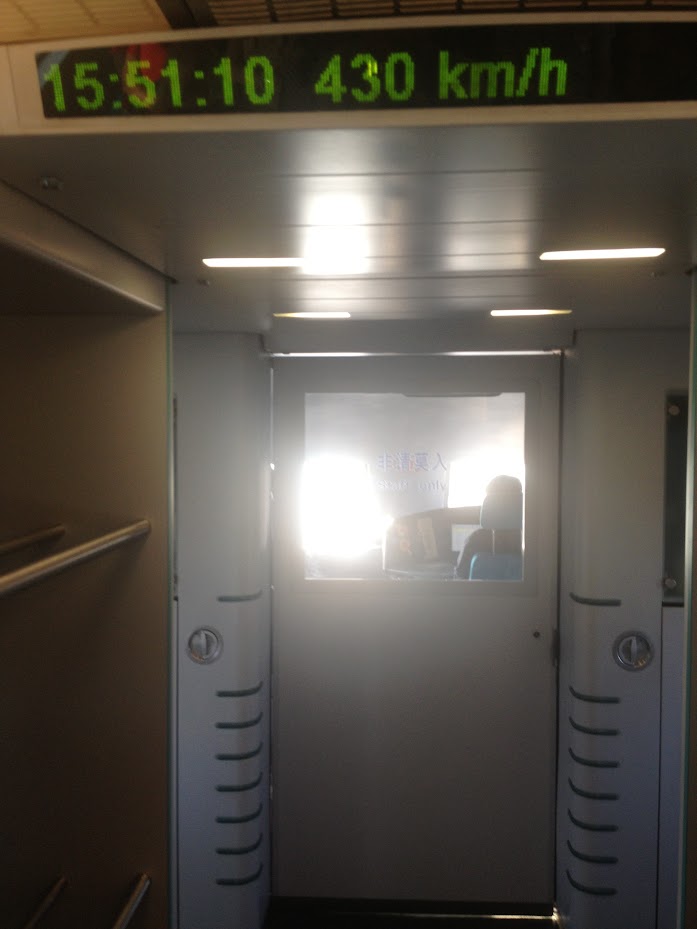 Я ездил в Шанхае на маглеве, там 430 максималка. Так вот, из 10 (вроде) минут, пока он едет до аэропорта, минуты четыре он разгоняется, две едет на максималке, потом тормозит