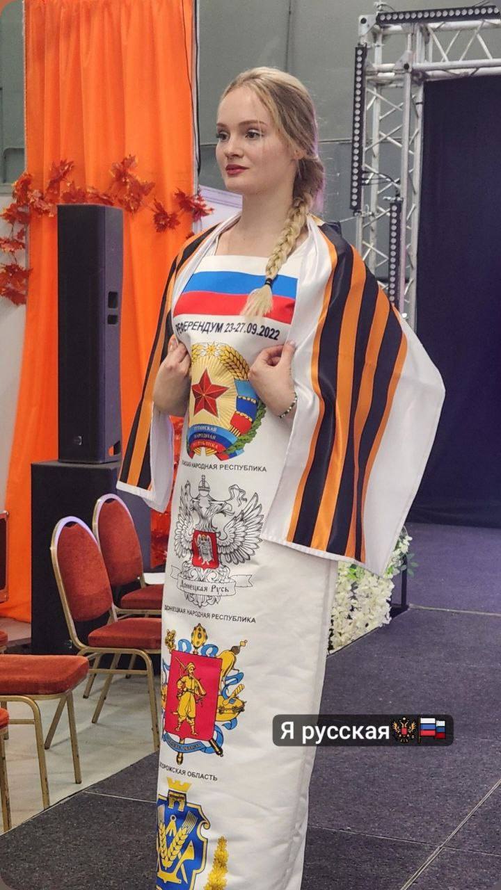 Приглядись, Алекс - на пузе герб ЛНР. Все ещё мерзопакостнее, это платье с полным набором "новых территорий"
