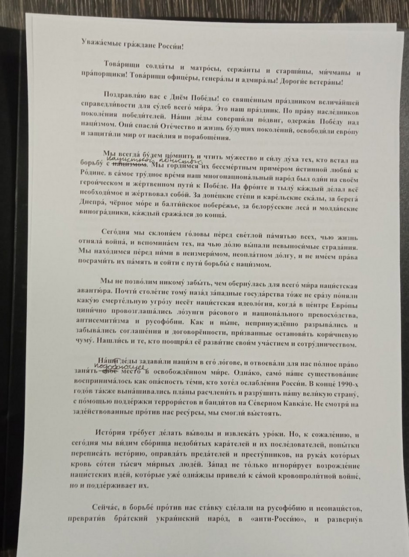 Путину пишут текст другим шрифтом и с другими абзацами. Помойка.