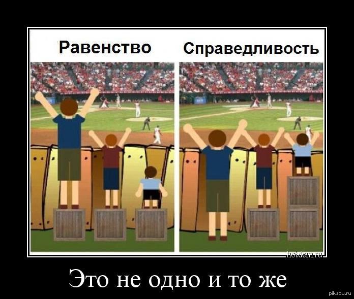 НЕравенство, это: "депутат/чиновник/мажор/и т.п украл миллиард и ему за это ничего не будет" и "дворник/рабочий/и просто человек украл 100 рублей и его посадили на 3 года"