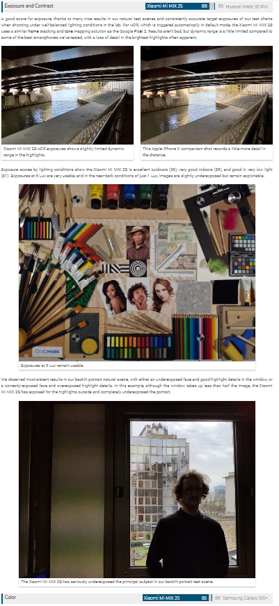 <<С чего вы взяли что это фото участвовало в тесте. В DxO практически все тесты объективны - в одинаковых условиях снимается СТЕНД и потом его оценивает алгоритм, а не человек. Приведенное фото иллюстративно и не знаю по какой надобности приведено в обзоре, может для LG показывали работу HDR режима, а для Xiaomi настройки по умолчанию - надо читать сам обзор>>