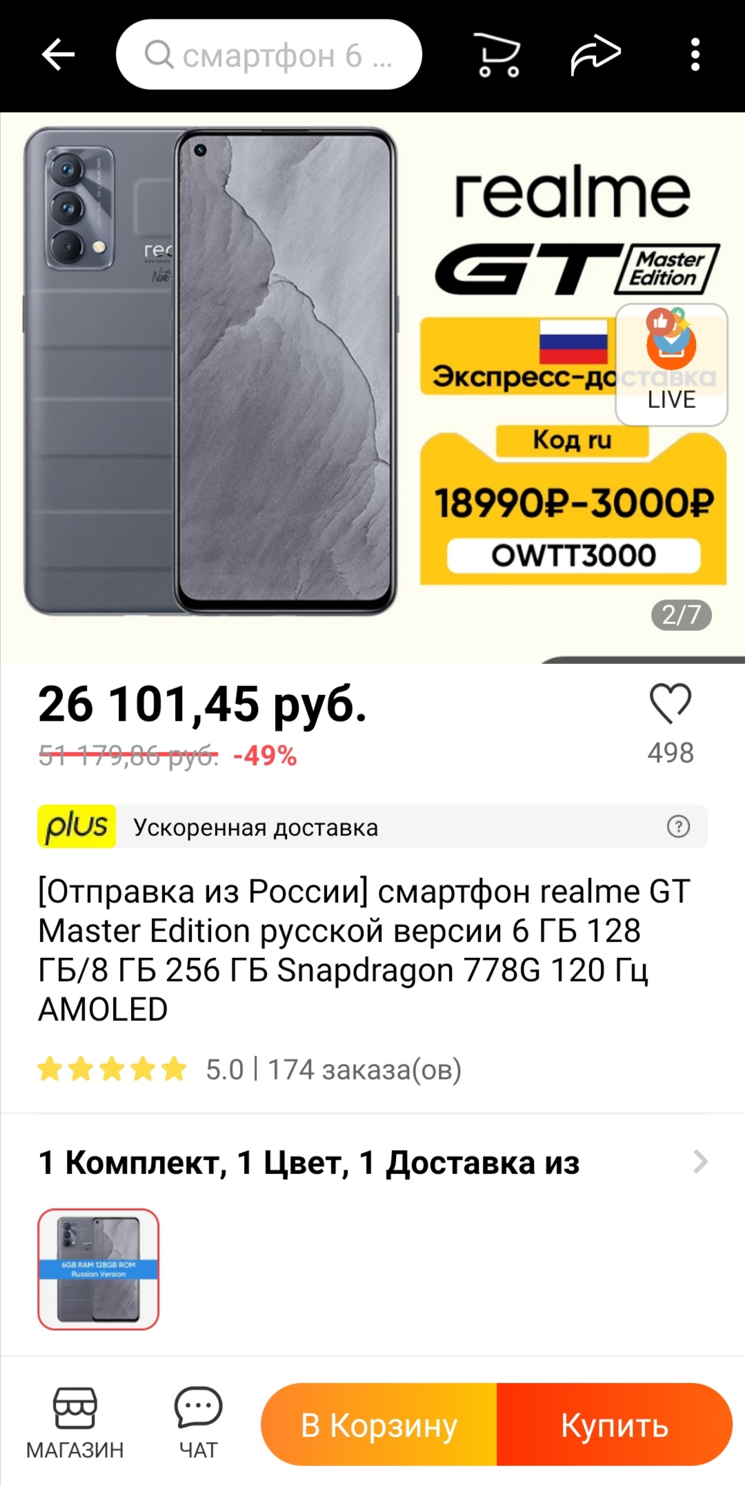 Ценник за русский 6/128 из России из официального магазина realme на 3000 меньше