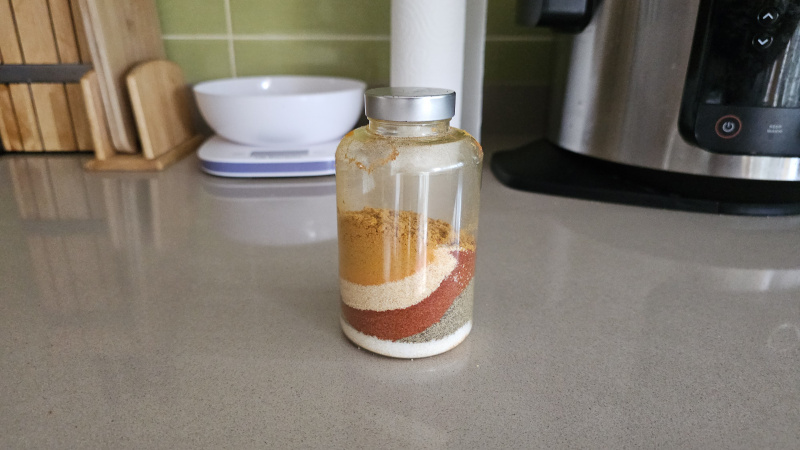 Смесь получается довольно ядреная, но я люблю поострее. Чтобы было не так остро, паприки нужно брать 2 ложки, кайенского перца 1 ложку.