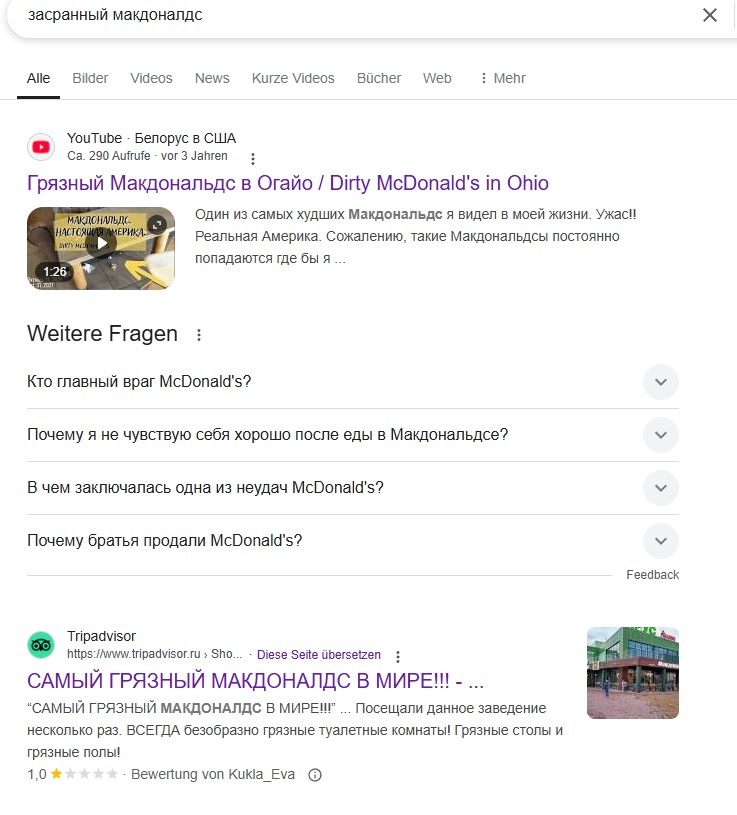 Введите в поисковой строке "засранный макдоналдс" и увидите, что такое может происходить в любой стране.