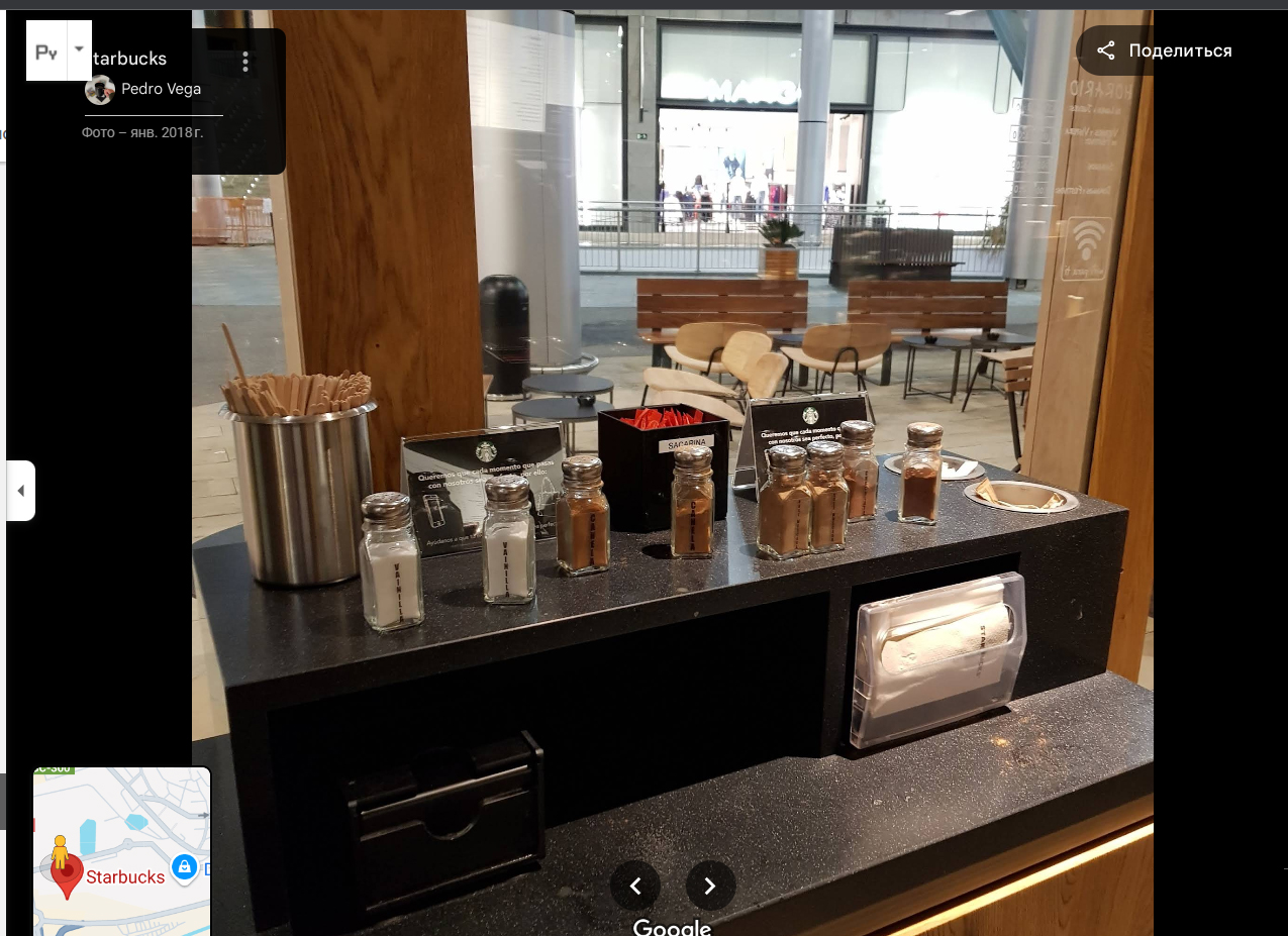 на фотке - за логотипом старбакса. где вы берете сахар и салфетки