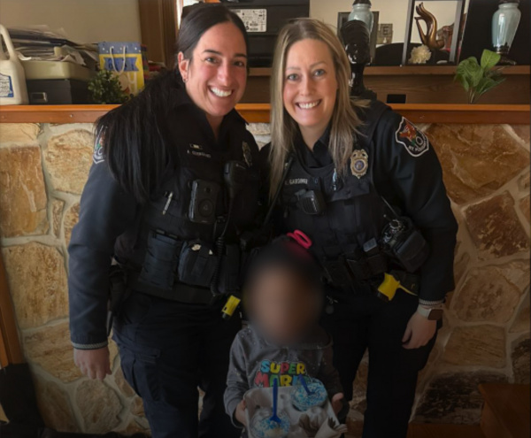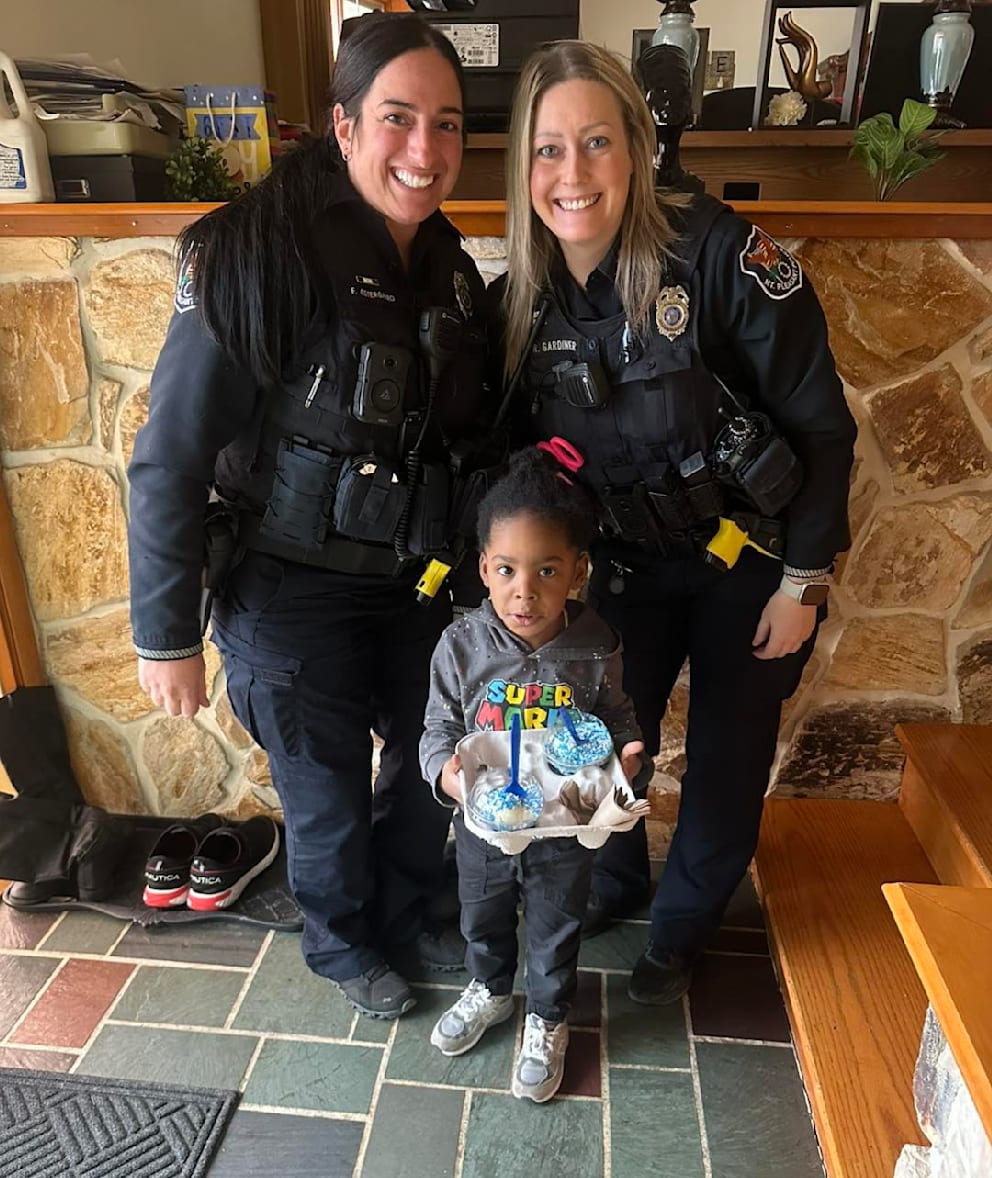 На фото - приехавшие по вызову полицейские и юный разоблачитель.