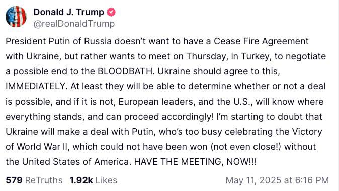 Начало мая - Зеленский красава, предложил перемирие без гарантий, а Трамп идиот.