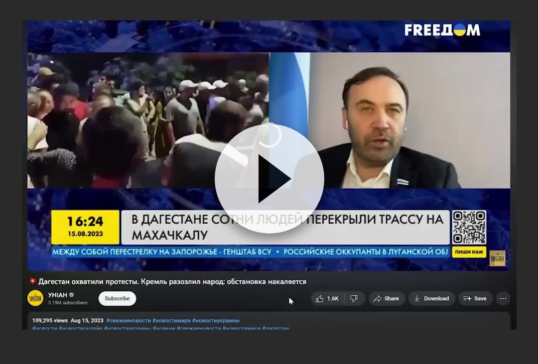 Отлично. Но я тебе конкретно указал на другое интервью Пономарева, где он в конце августа 2023 говорит не про мобилизацию, а про взрыв на заправке. И там он ни слова не говорит про мобилизацию, но говорит, что (прямая цитата): "существует версия, которая высказана нашим тг-каналом Утро Дагестана..."
