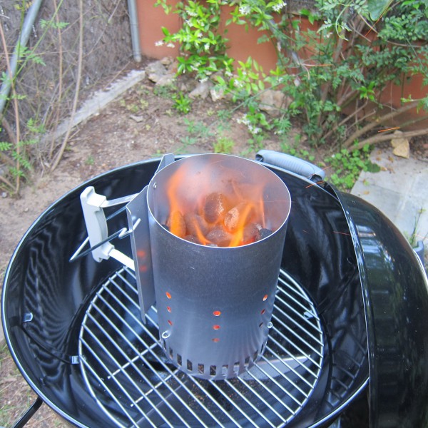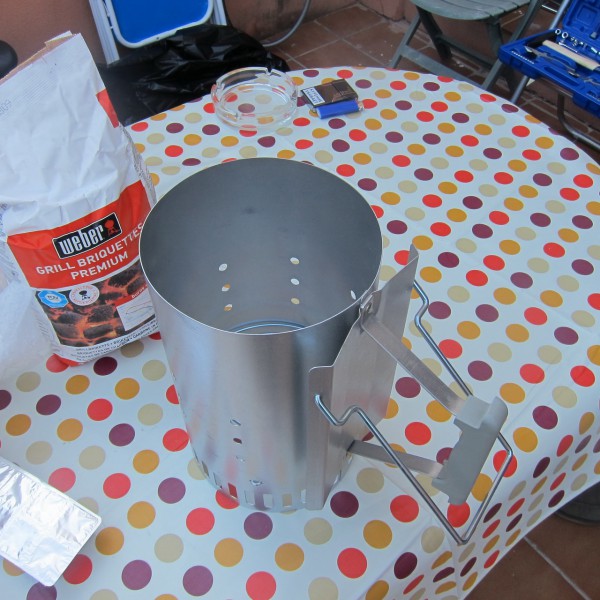 Через 10 минут все угли разгорелись, можно начинать готовить. (Я как вспомню растопку мангала, так вздрогну - это целое дело. А здесь засыпал, поджег, 10 минут пьешь пиво, потом можно заряжать мясо.)