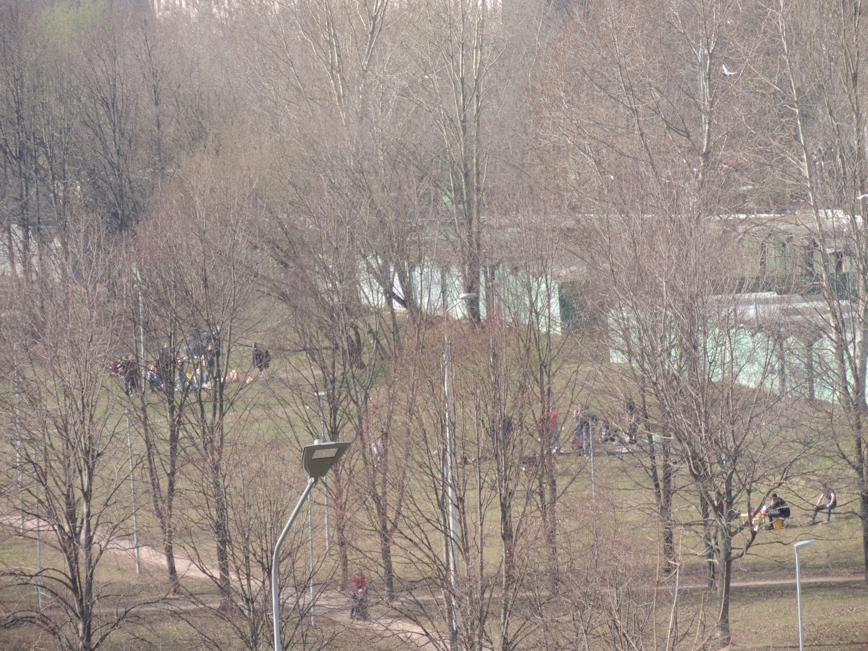 Москвичи, которые решили сбежать из города в дикое замкадье (это одна из нескольких десятков подобных групп в парке).