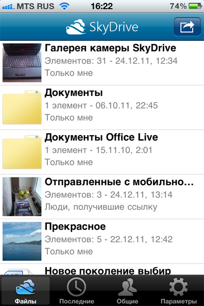 Кстати, для SkyDrive есть симпатичное приложение под iPhone/iPad.
