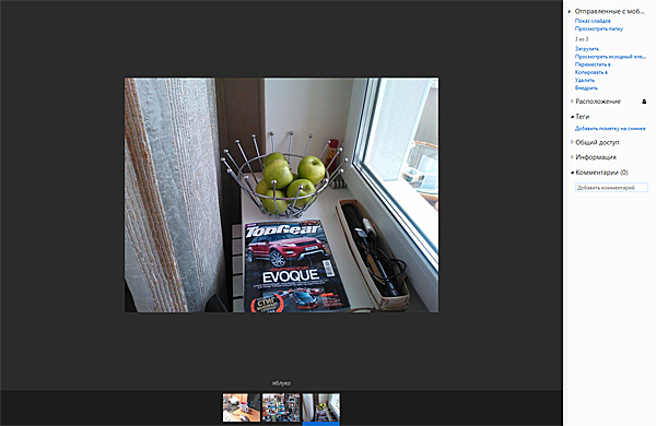 Причем со SkyDrive получается даже удобнее, чем с iCloud - прежде всего тем, что вы можете работать с фотографиями непосредственно на сервисе SkyDrive: скачивать их оттуда и делать с ними что угодно. На сайте же iCloud доступа к изображениям нет вообще.
