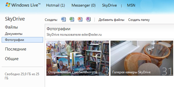 SkyDrive - это облачный сервис Microsoft, в котором для каждого зарегистрированного (получившего Windows Live ID) пользователя выделяется 25 Гб пространства для хранения документов, изображений и любых других файлов.