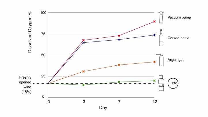 Интересный график, просто закрытое пробкой вино медленнее кислородом насыщается, чем с откачанным помпой воздухом. Вот это поворот...