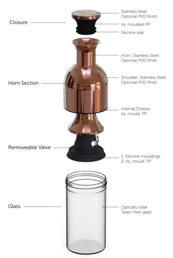 В Facebook попалась реклама интересного устройства для сохранения недопитого красного вина в бутылке. Это нечто вроде шейкера со специальным силиконовым поршнем, который при нажатии перемещается вплотную к недопитому вину, перекрывая доступ к нему кислорода. По словам разработчика, в подобном устройстве красное вино может храниться несколько недель без потери своих вкусовых качеств. (Без этого красное вино уже через сутки окисляется и, соответственно, портится.)