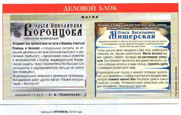 Продолжаю рыдать с нынешнего "Профиля". Издание очень солидное. Очень. Исключительно для деловых людей. Собственно, это легко можно увидеть по рекламе, которая у них публикуется в разделе "Деловой блок".