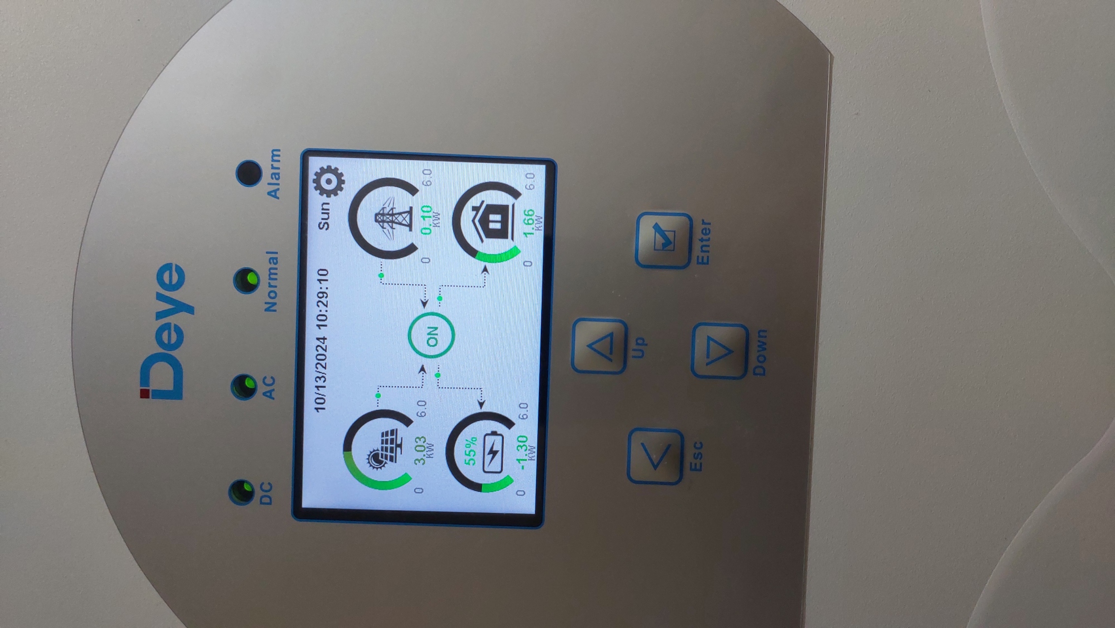 10 кВт номинальной мощности панелей могут использоваться полностью для меня через гибридник, а когда это переизбыток - щелк переключателем - и половина (5 кВт) начинает продаваться в сеть через сетевой инвертер