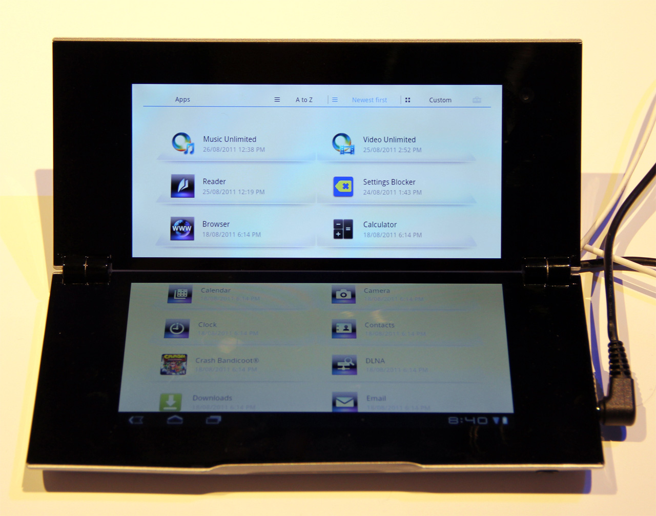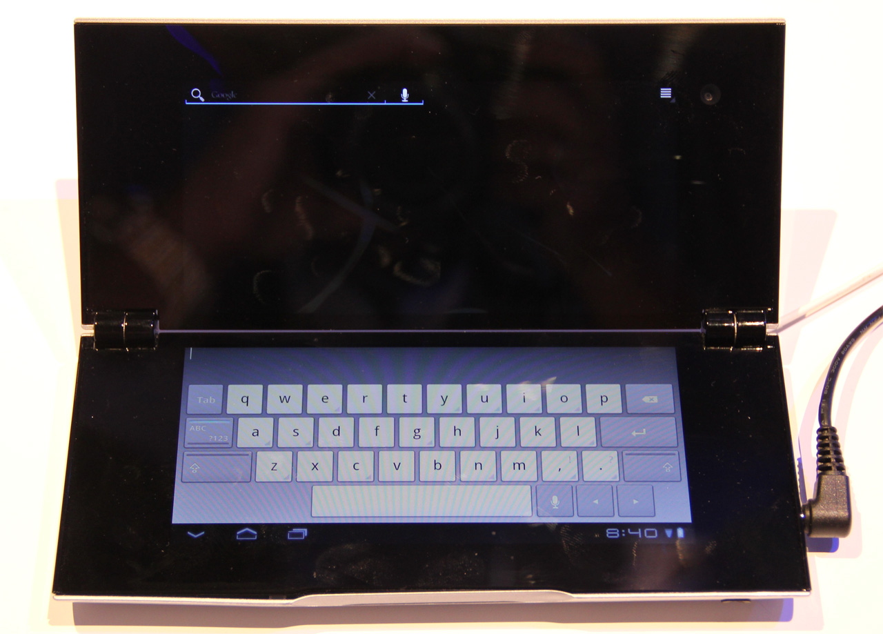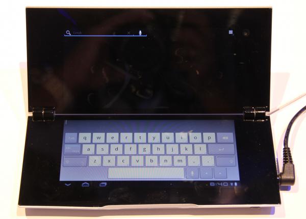Вторая новинка - очень странное устройство под названием Tablet P. Это планшет, дисплей которого разделен пополам, и который можно складывать как книжку.