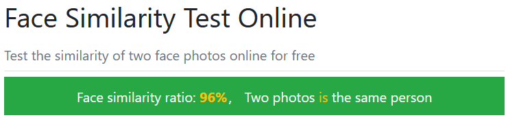 Достаточно зайти на один из многочисленных онлайн сервисов, сравнивающих лица и ввести первые две фотографии, чтобы понять, что это один и тот же человек. Современные системы распознавания лиц дают почти 100% точность, тут не нужны никакие японцы, да и сам человек распознаёт лица с точностью 97,53%.