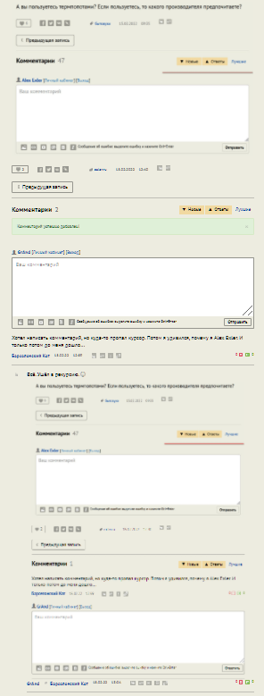 Когда написал один коммент, пишешь другой (к другому комментарию), и вдруг в него переносится полностью содержимое предыдущего. Т.е. ощущение, что вместо режима "добавить комментарий" включается "отредактировать", вот только комментарий создается всё же новый.