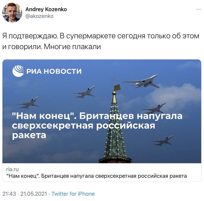 Сегодняшняя новость там просто прекрасна: вся Британия со страхом обсуждает *сверхсекретную* российскую ракету.