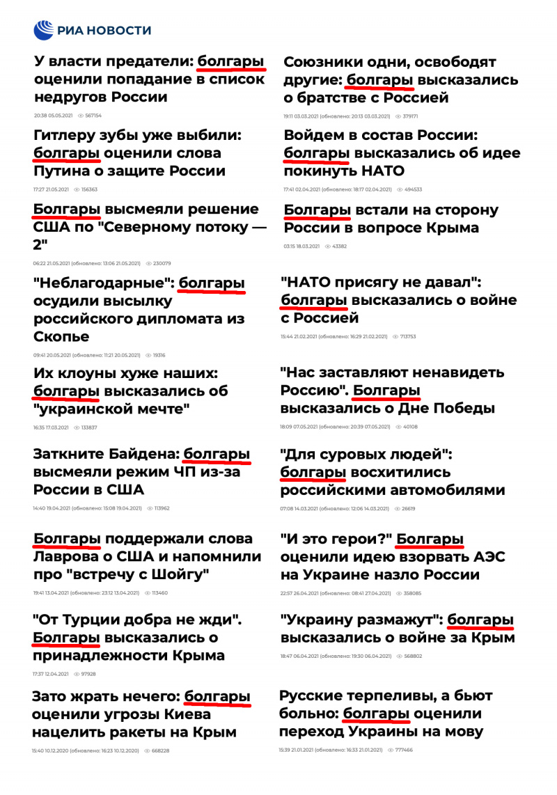 Причем я по некоторым таким "новостям" сходил и почитал, там упоминаются "читатели газеты такой-то", "в болгарских соцсетях" и так далее, причем, разумеется, безо всяких скриншотов. (Хотя на самом деле и скриншоты организовать - пара пустяков.) В общем, не напрягаются в "РИА Новости", не напрягаются.