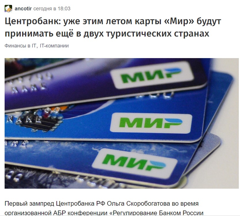 Центробанк: уже этим летом карты «Мир» будут принимать ещё в двух туристических странах