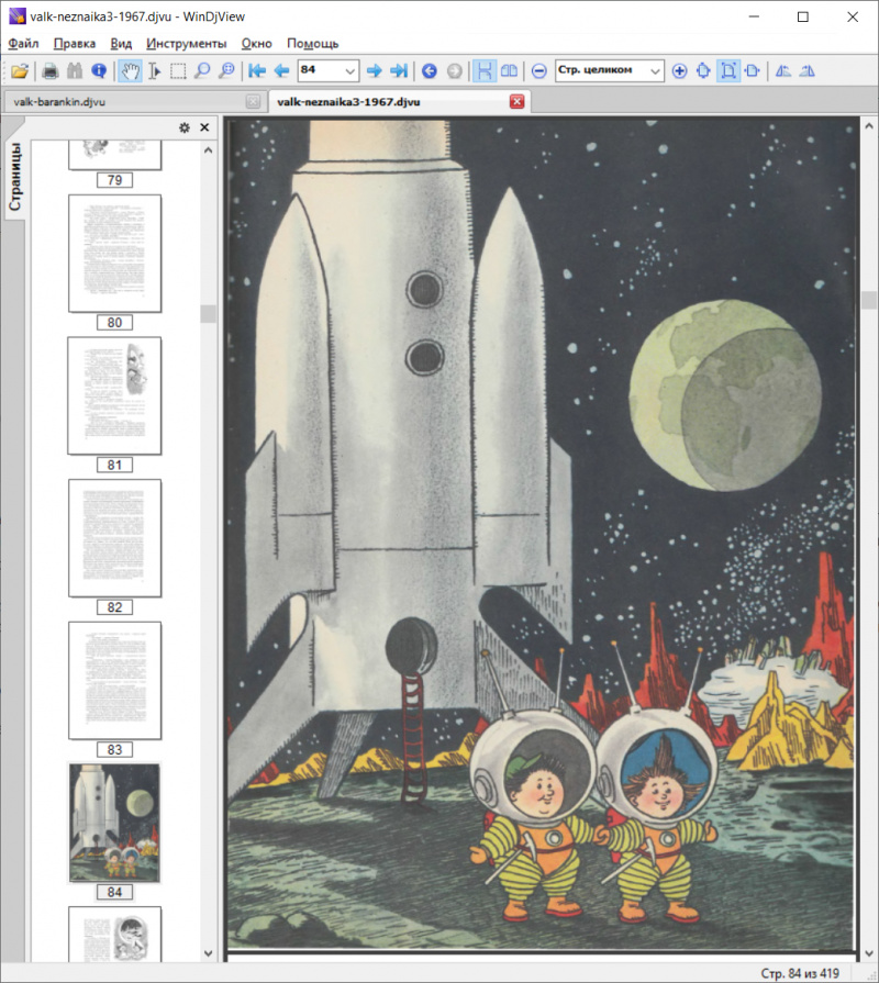 Раздел "Советская книжная иллюстрация" - просто великолепный! Подборки сделаны по легендарным художникам-иллюстраторам - вот, например, раздел Генриха Валька. Все книги выложены в формате DjVu, то есть они отсканированы как есть: со всеми иллюстрациями и цветными вкладками. Вот, например, "Незнайка на Луне" - гениальная книга с великолепными иллюстрациями!