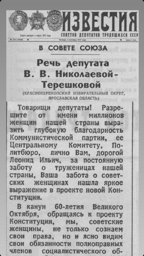 Ну и в тему - как Терешкова в космос летала и ее последующая карьера.