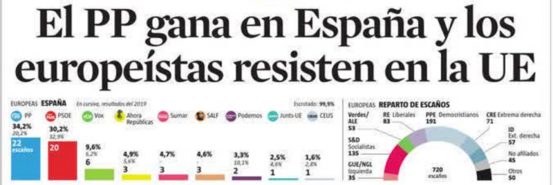 Испания показала низкую явку 38% (много хуже 50% в 2019 году), никакого плебисцита «за или против Санчеса» не вышло.