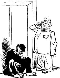 У стоянки извозчиков Швейк посадил фельдкурата на тротуар, прислонив его к стене, а сам пошел договариваться с извозчиками. Один из них заявил, что знает этого пана очень хорошо, он уже один раз его возил и больше не повезет.