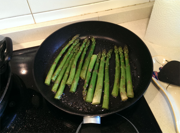 Alex Exler: Только нижнюю, побелевшую часть спаржи лучше отрезать - она при жарке остается твердой.
