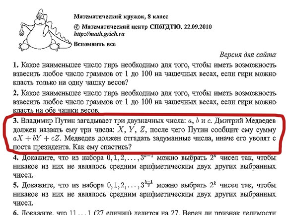 Быстро отреагировали: страничка с этой задачкой из сайта math.grich.ru уже удалена...
