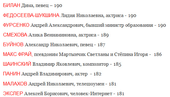 Как по мне, так самое странное - это наличие в списке Аниты Цой и полнейшее отсутствие в нем одного ее однофамильца.
